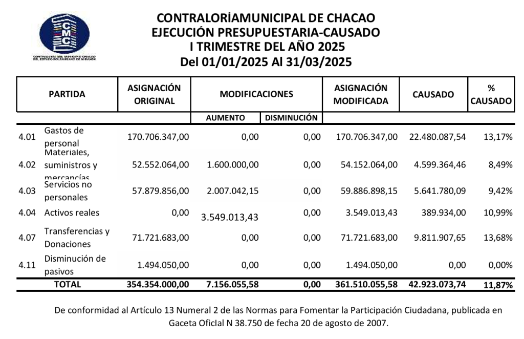 EJECUCIÓN PRESUPUESTARIA-CAUSADO I TRIMESTRE DEL AÑO 2025 Del 01/01/2025 Al 31/03/2025